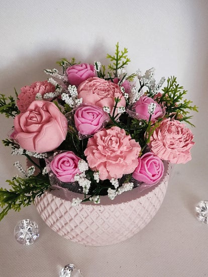 Diese schönen Sträuße aus Keraflott habe ich mit viel Liebe hergestellt. Alles ist in Steckmasse befestigt. Es sind 2 verschiedene Größen klein ist ca 8 cm Durchmesser und mittel ist ca 12 cm Durchmesser