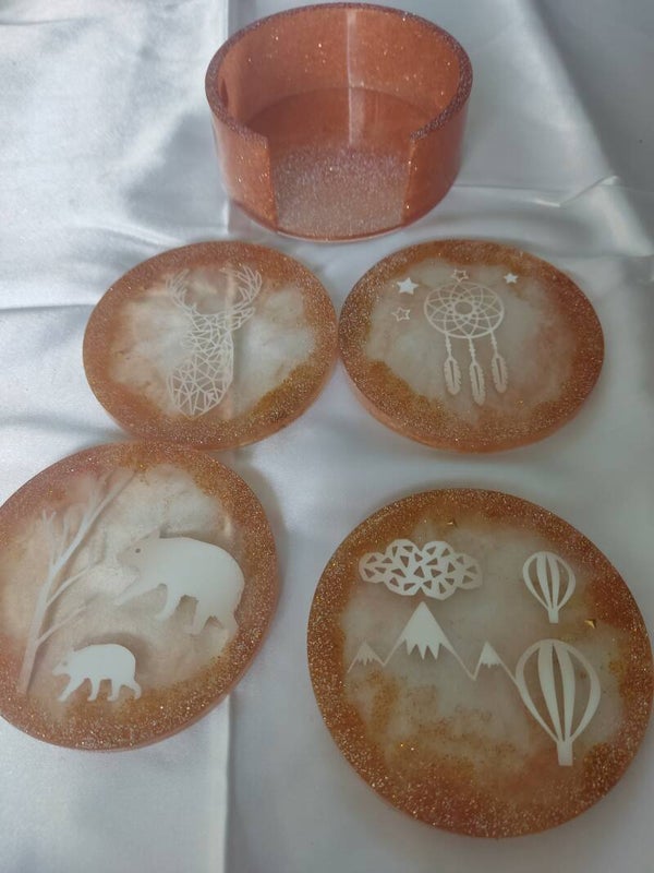 Untersetzer Set aus Epoxidharz mit Halter