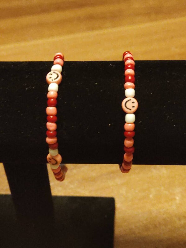 Süße Freundschaftsarmbänder aus Modeperlen und elastischen Band. Ein Armband hat 1 Smiley und das Andere 3 smileys. Andere Farben gerne auf Nachfrage