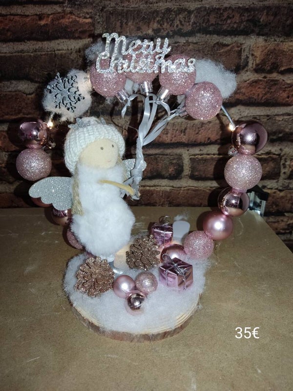 Weihnachtsgestecke auf Baumscheibe mit kugeln